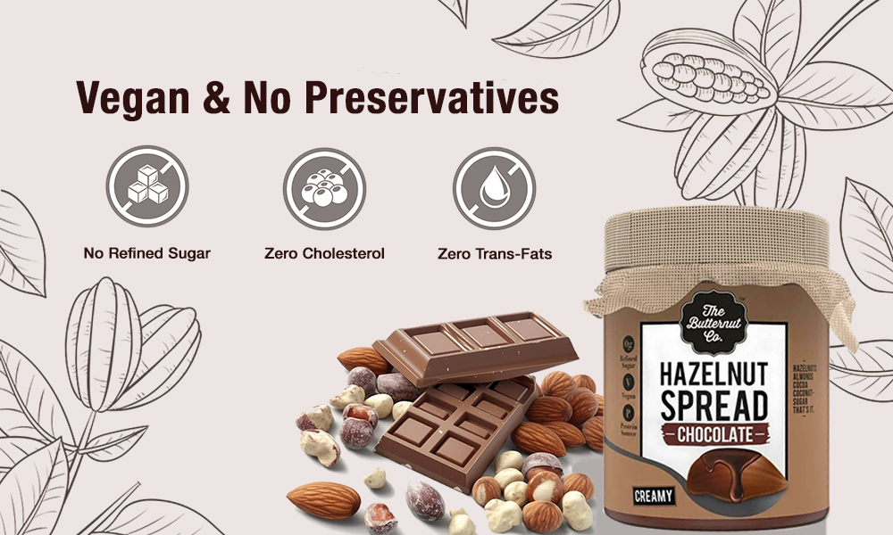 The Butternut Co. Chocolate Hazelnut Spread No Refined Sugar, Vegan and No Preservatives (200 g)
