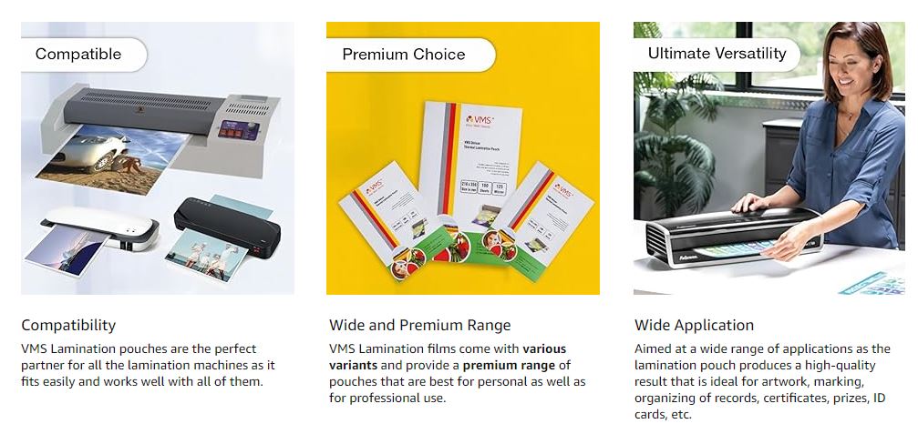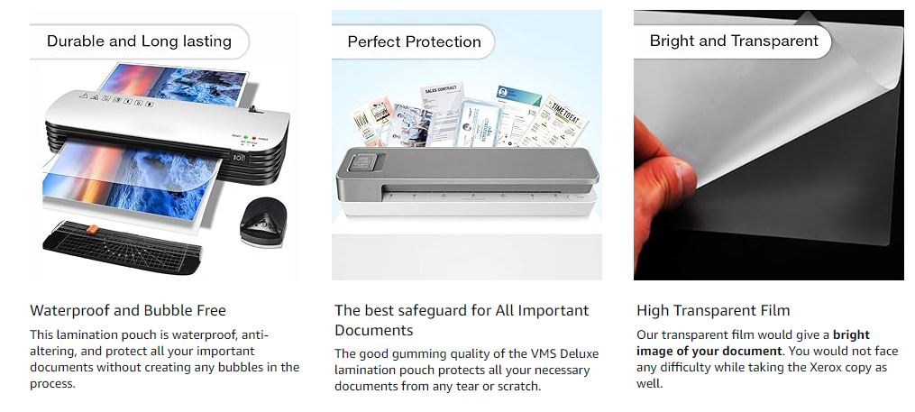 VMS Deluxe Thermal Lamination Pouch 65mmx95mm 250 Micron - Pack of 2 (200 Sheets) for Id Card