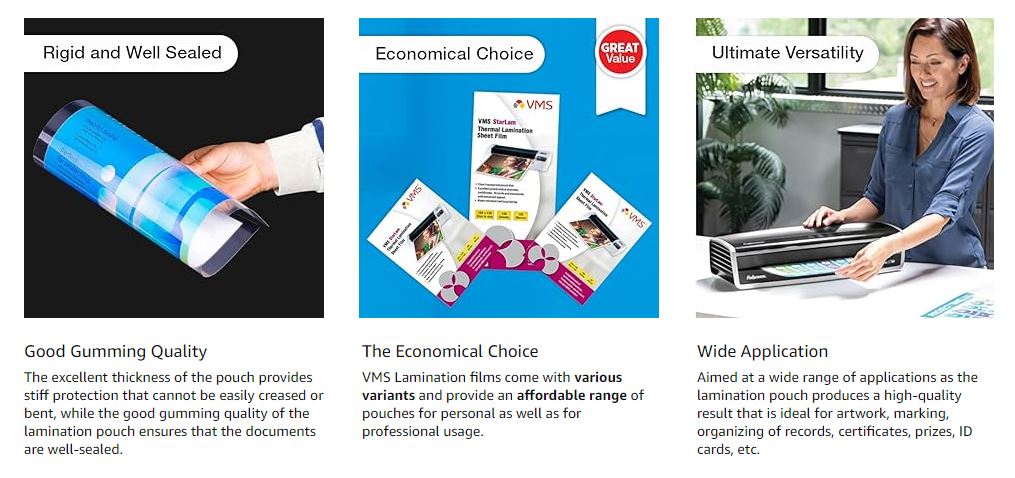 VMS Starlam Thermal Lamination Pouch 225x310mm 80 Micron for Certificate and Documents
