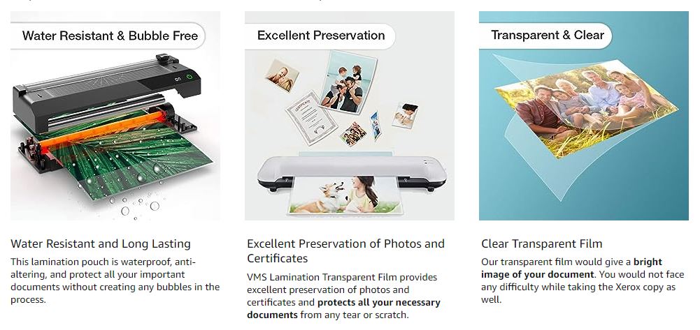 - Transparent film which provides excellent preservation of photos and school marksheet.