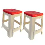 Wow craft Heavy Duty Plastic Stool for Home, Office and Garden (Beige and Red)(Pack of 2) (Red)
