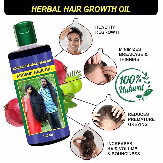 - Adivasi hair oil may emphasize the use of natural ingredients traditionally used by Adivasi communities for hair care, such as herbs, plant extracts, and oils sourced from local flora.