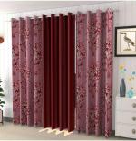 AH ARTSY HOME 3D Digital Tree Design Printed Heavy Quality Knitting Polyester Curtain Set of 3 (Maroon), (4x7feet)