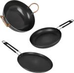 Aja steel Cookware Combo - (Iron Tawa + Iron Skillet Fry Pan + Iron Kadai) Cookware Set | Healthy Cooking | Gas Compatible | Black
