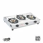 APEX TRIDENT 3 Burner Stainless Steel LPG Gas Stove | Brass Burner| Heavy Duty Pan Support | ISI Certified