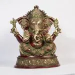 Arihant Craft Hindu God Ganesha Idol Statue Hand Work Showpiece - 29 cm ( Brass, Red, Green )