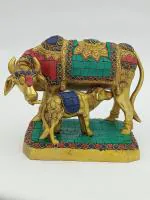 Arihant Craft Kamdhenu Idol Handcrafted Stone Work Showpiece - 15 cm (Brass, Multicolour)