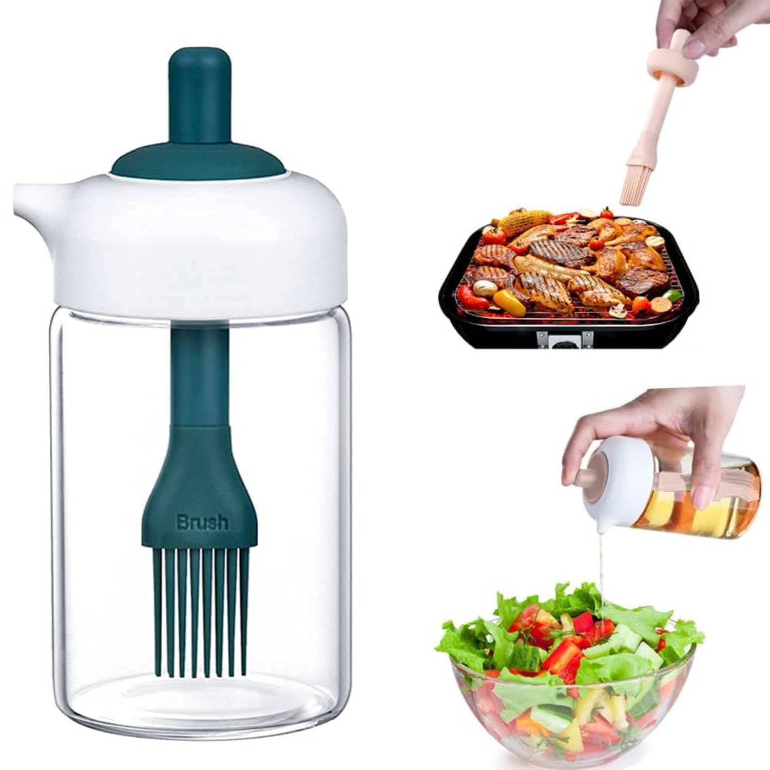 - This oil dispenser bottle with brush adopts an integrated design of tiny nozzle pouring and built-in brush dipping which is a plus so that you can pour oil or brush oil precisely which is convenient for cooking and improving healthy diet by reducing oil c