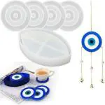 BAKEWAREIND Lyba Moulds Evil Eye Nazar Round Coaster Resin Fondant Soap Candle Silicone Chocolate Mould (Pack of 5) l Chocolate Mould l Silicone Chocolate Mould l Decorating Chocolate Mould l Chocolate Moulds l Cake Moulds l Moulds
