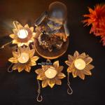 Blissful Decor Decorative Iron Hanging Lotus Small Tealight Candle Holder with Chain Pack of- 4