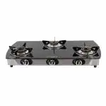 - GAS STOVE TYPE : 3 Burner Manual Gas Stove. TOUGHEND GLASS TOP : Toughened Glass Top along with stainless steel frame makes a unique combination of strength and elegance.