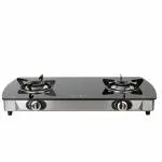 BlowHot Jasper Piezo Auto Ignition Heavy Brass 2 Burner Gas Stove | Toughened Glass Cooktop - Stainless Steel Frame - (Black)