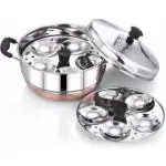 Blu Bel Stainless Steel Multipurpose Kadai Cum Idly Cooker with Whistle,3 Plates 15 Idly Induction & Standard Idli Maker (3 Plates , 15 Idlis )