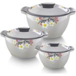 BLUBEL Stylo Grey Colour Insulated Inner Stainless Steel Pack of 3 Thermoware Casserole Set (900 ml, 1200 ml, 2100 ml)