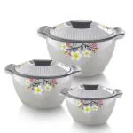 BLUBEL Stylo Grey Colour Insulated Inner Stainless Steel Pack of 3 Thermoware Casserole Set (900 ml, 1200 ml, 2100 ml)