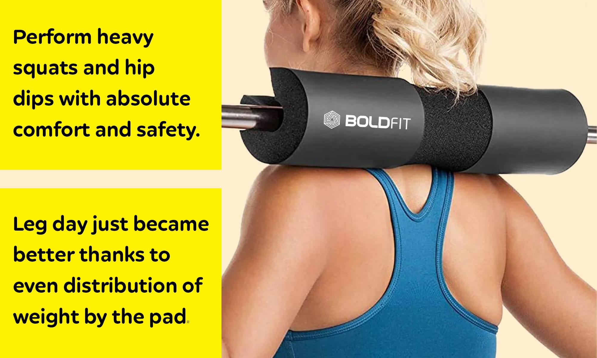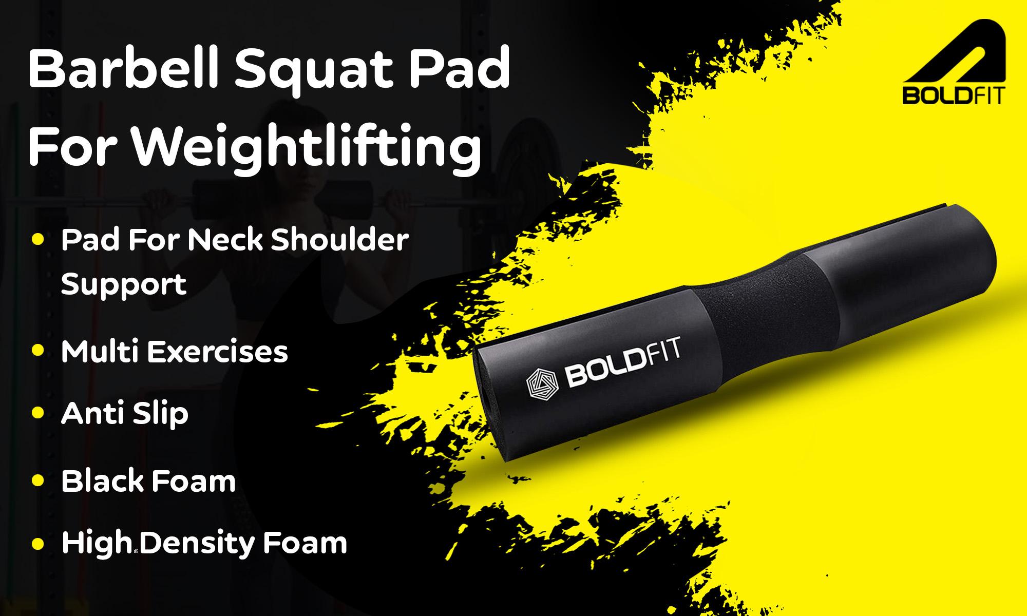 Boldfit Barbell Pad For Weight Lifting With Extra Cushion Squat Pad For Gym Rod Foam Hip Thrust Pad For Neck & Shoulder Support Standard Sponge Barbell For Gym Squats, Weightlifting - Black - Foam