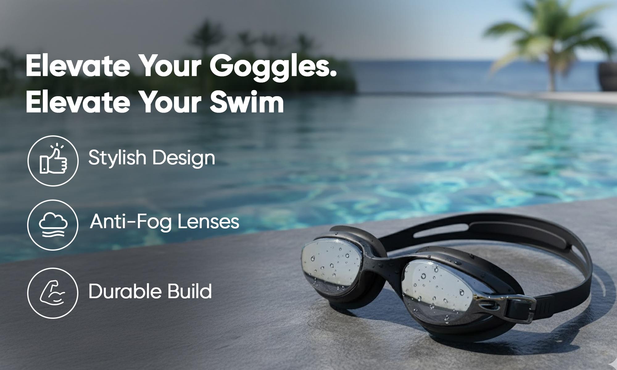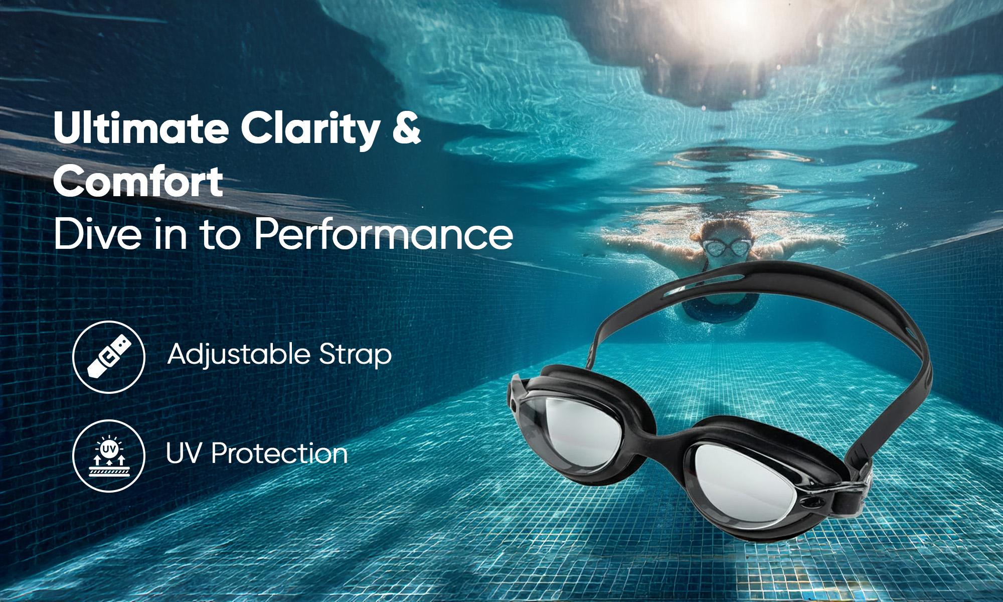 Boldfit Swimming Goggles for Men and Women Adjustable Strap Goggles for Swimming, Swimming Goggles for Women Air Tight Swim Goggles for Adults with Free Case - Black