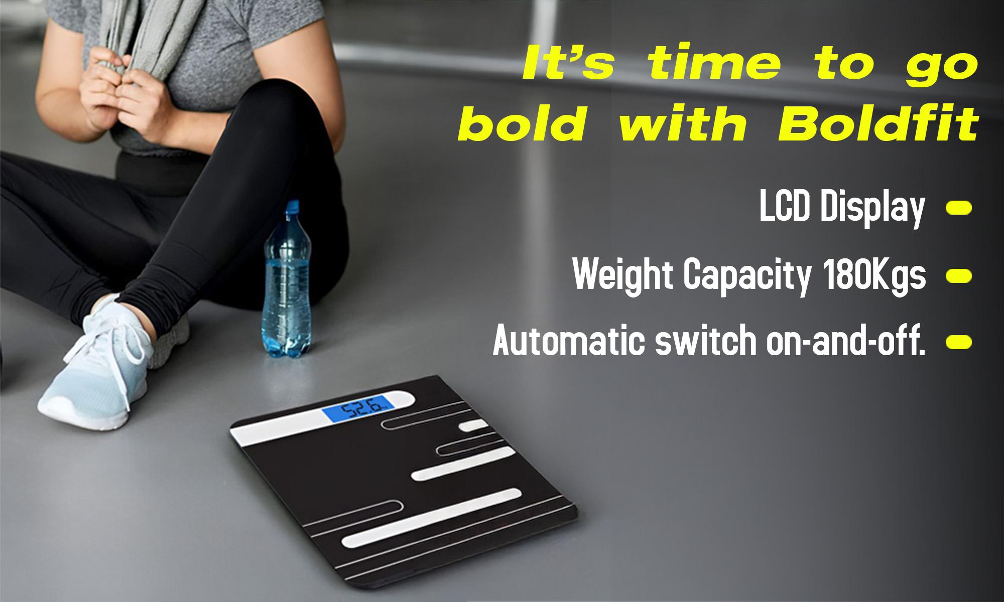 Boldfit Weight Machine for Home Digital Weighing Machine for Human Body with LCD Display Max Weight Capacity 180Kgs (Batteries Not Included) Bathroom Scale for Home | Black