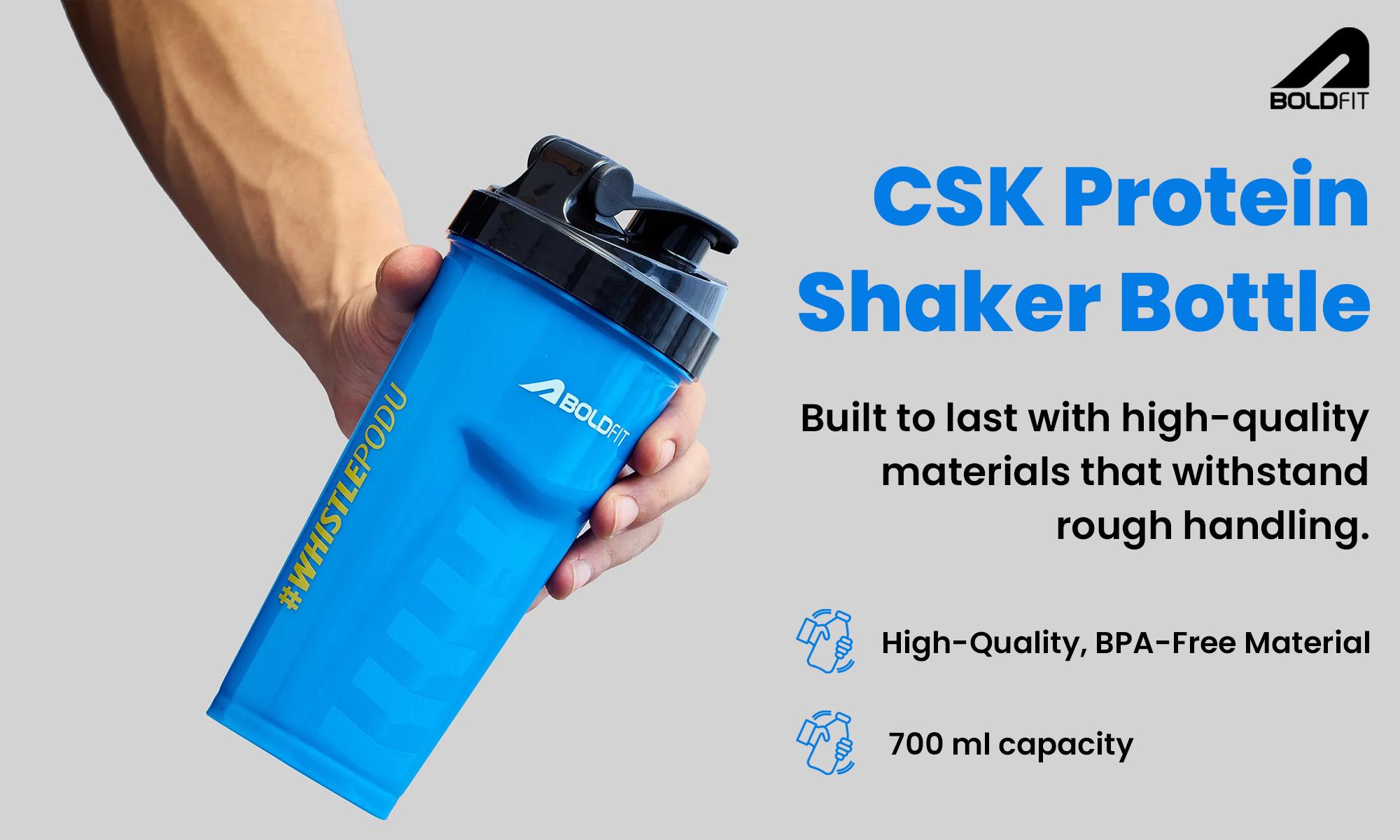 Chennai Super Kings (CSK) Official Merchandise Gym Shaker for Protein Shake Leakproof Shaker Bottles for Protein, Preworkout and Bcaa Shake, Protein Shaker Bottle for Gym Men & Women Blue Black