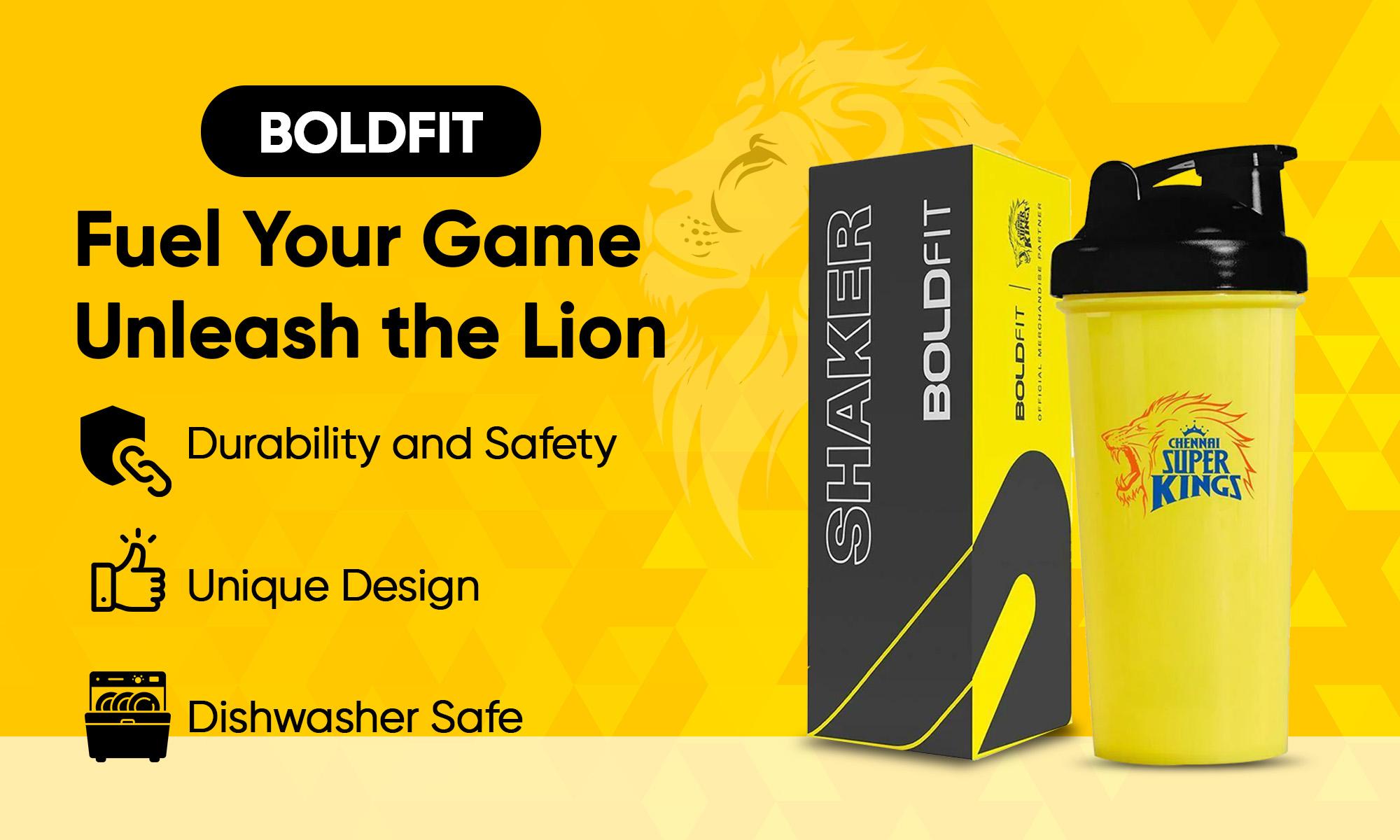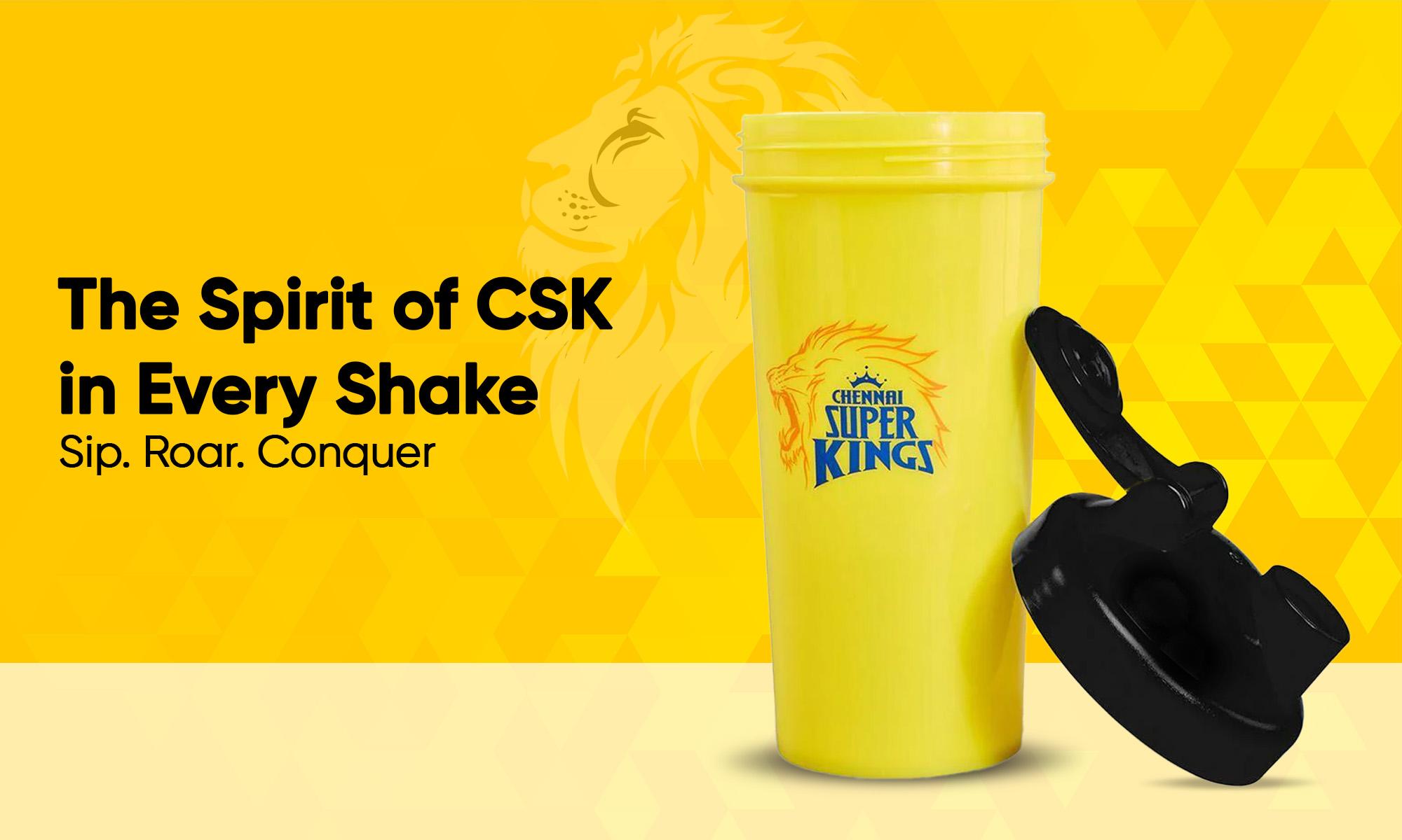 Chennai Super Kings (CSK) Official Merchandise Gym Shaker for Protein Shake Leakproof Shaker Bottles for Protein, Preworkout and Bcaa Shake, Protein Shaker Bottle for Gym Men & Women Yellow Black