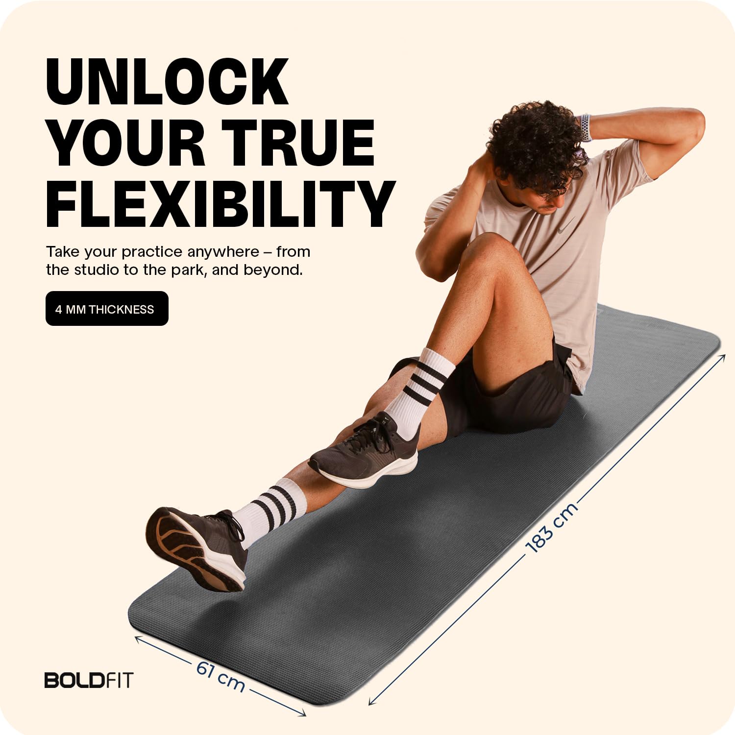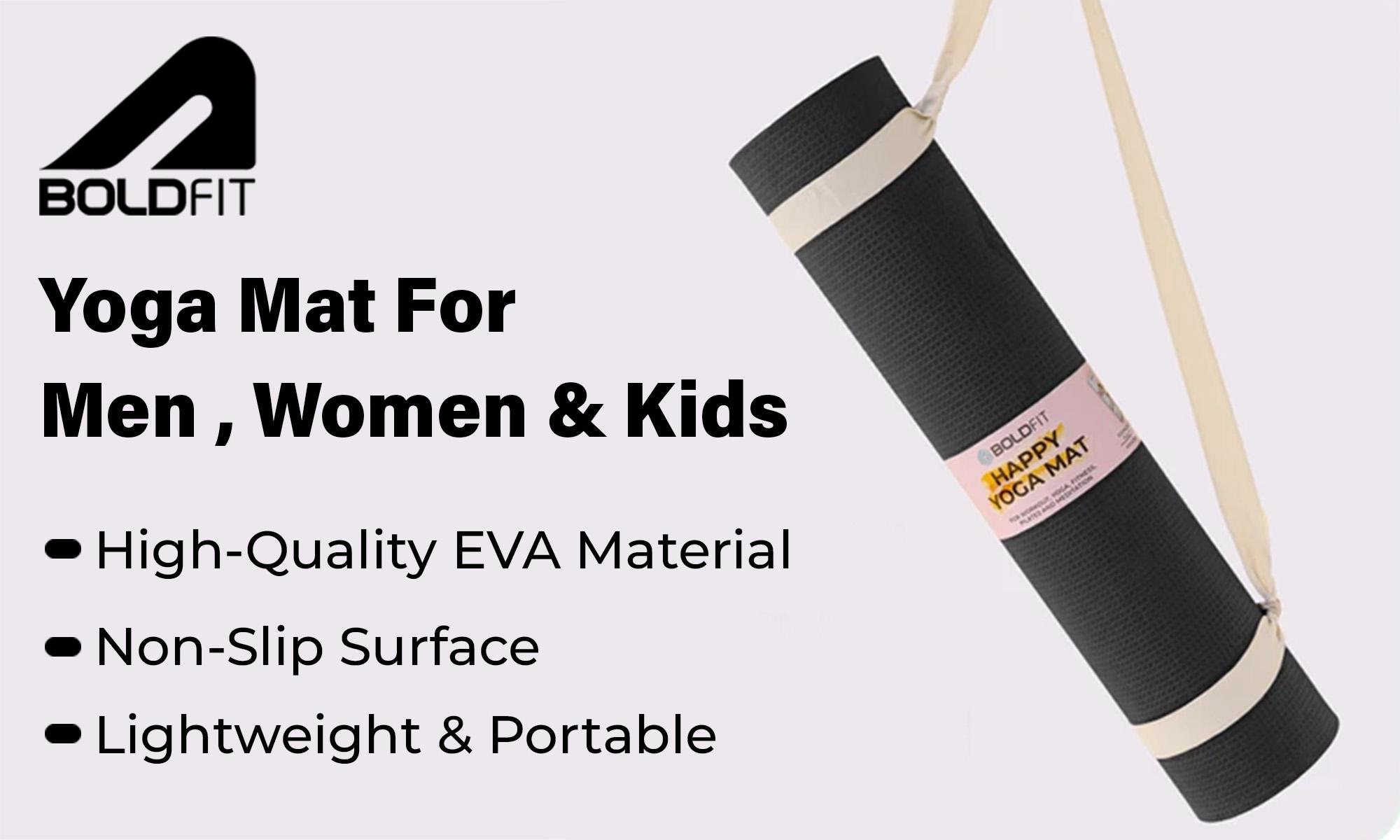 Boldfit Yoga Mat For Men Women & Kids Eva Exercise Mat For Gym Black 4mm Yoga Mat