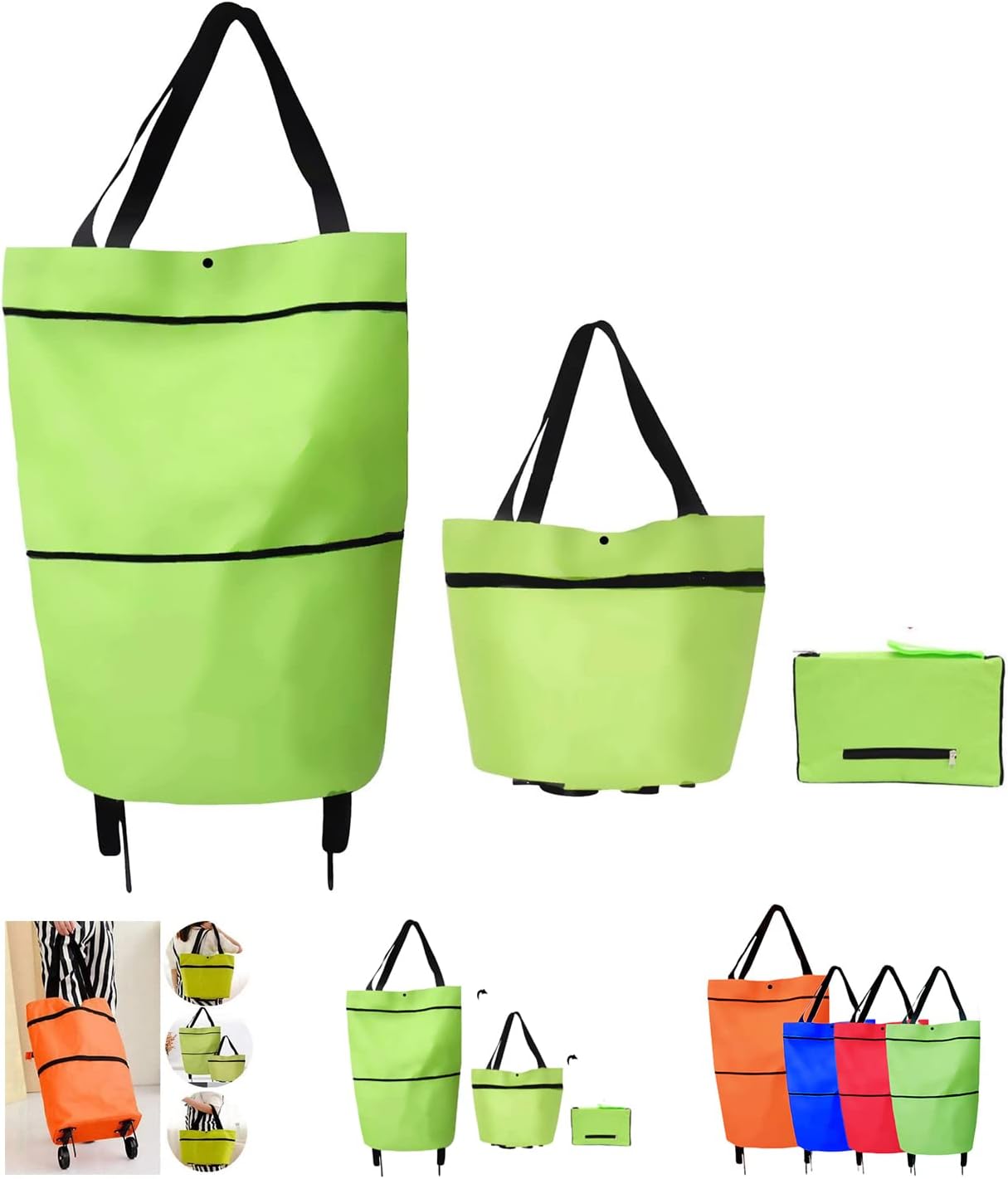 BREAZBELL New 2 in 1 Foldable Shopping Cart, Portable Collapsible Shopping Bag with Wheels, Lightweight Waterproof Rolling Shopping Bag, Trolley Tote Bag Stair Climbing Cart for Traveling Shopping-Multi-1PC