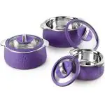 Cello Royale Casserole 3 PC (600ml, 1100ml, 1600ml) Purple Pack of 3 Thermoware Casserole Set