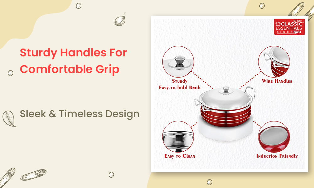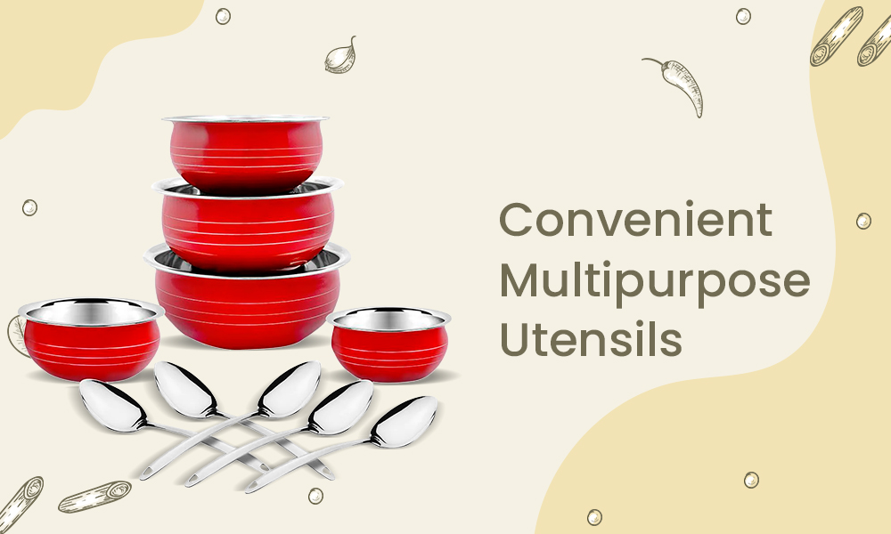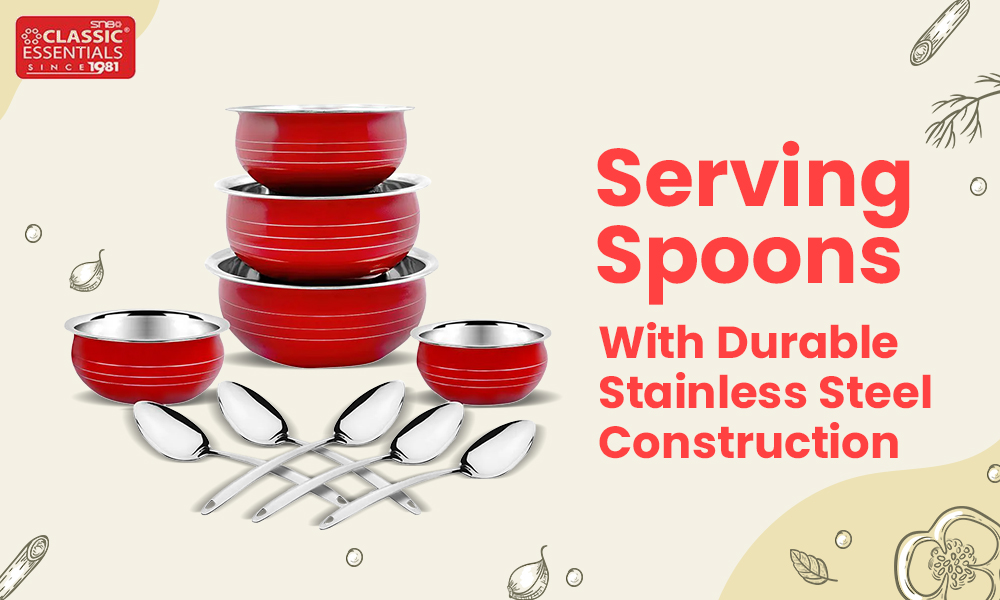 Classic Essentials Stainless Steel Cook & Serving Handi Set 5pcs with 5 Serving Spoon- Black