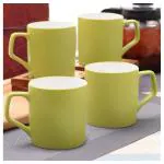 Clay Craft Executive Ceramic Coffee Mug and Tea Cup Set - Green, Set of 4, 220 ml Each