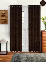 Cortina Velvet Polyester Solid Door Curtain Pack of 2 , Brown (7FT-L X 4FT-W)