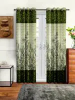 Cortina Panel Print Polyester Floral Long Door Curtain Pack of 2 ,Green (9FT-L X 4FT-W)