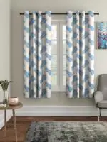 Cortina Blue Floral Polyester Window Curtain 5 ft x 4 ft Pack of 2 (Design 8)