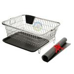 Cosmos Stainless Steel Rectangle Dish Drainer Rack / Basket with Drip Tray & Anti Skid Mat , Dish Rack , Kitchen Rack , 18X15X10 inches (LXWXH) , Size-Small , Silver (TDDSQ1) (Small 18x15)