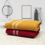 Cotton Bolls Textiles Blended Cotton 2 Piece Bath Towel Set, 450 GSM, 70x140 cm (Tomato Red & Musturd Yellow)