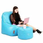 Couchette Kocaman XXXL Chaise Lounge Beanbag with Pouffe in Sky Blue Finish (Filled With Beans)