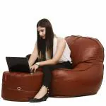 Couchette Kocaman XXXL Chaise Lounge Beanbag with Pouffe in Tan Finish (Filled)