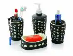 - 4 PIECE BATHROOM SET: Every set comes with one soap dispenser, one tumbler, one toothbrush holder and one soap dish. With the complete bathroom accessory set, you can organize your daily toiletries and keep your bathroom counter top tidy with ease
