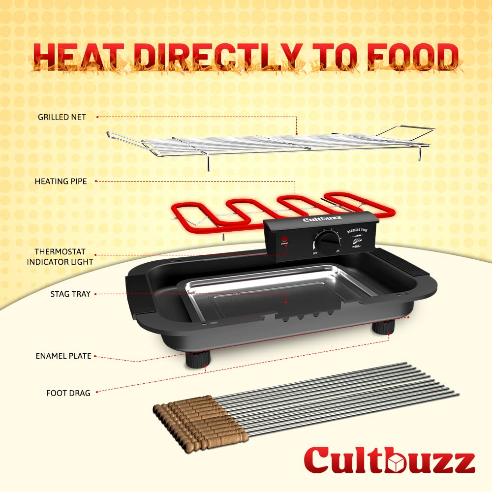 - Electric Tandoor: Effortlessly prepare delicious grilled tikkas with the Cultbuzz electric grill's non-stick plates.