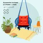 Curio Centre Blue Round Cotton Rope Hanging Swing Chair with L Cushion, 2 S Hooks & Rod 145x57x43 cm