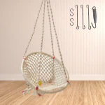 Curio Centre White Round Cotton Swing Chair with S Hooks, Rod & Spring 145 x 57 x 43 cm
