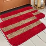 CWK Red Gold Microfiber Striped Door Mats for Home, Bathroom, 40cm x 60cm -Set of 2