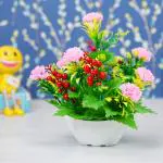 Dekorly Artificial Carnation Flower Basket for Home, Garden, Office, Wedding Decor (Pink) with Pot