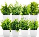 - Dekorly Artificial Potted Plants, 8 Pack Artificial Plastic Eucalyptus Plants Small Indoor Potted Houseplants, Small Faux Plants for Home Decor Bathroom Office Farmhouse, Green