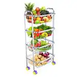 DEVRSHREE Stainless Steel Fruit & Vegetable 4 Stand Kitchen Trolley | Fruit Basket | Vegetable Basket | Onion Potato Rack for Kitchen | Vegetable Stand for Kitchen