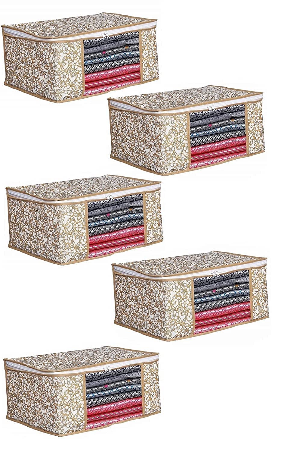 DG PRIME COLLECTION Printed Non Woven Fabric Saree Cover/Clothes Organiser For Wardrobe Set with Transparent Window And Zip For Lehenga, Suit, Dress,& Accessories, Extra Large (Pack Of 4)