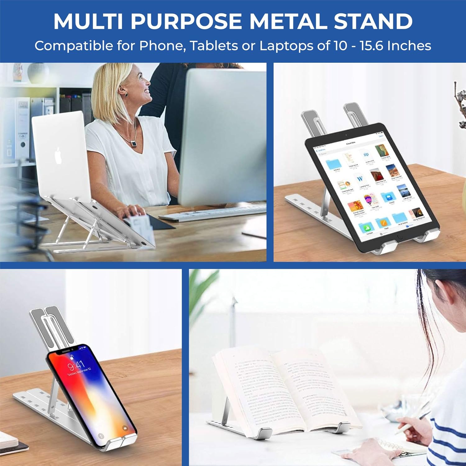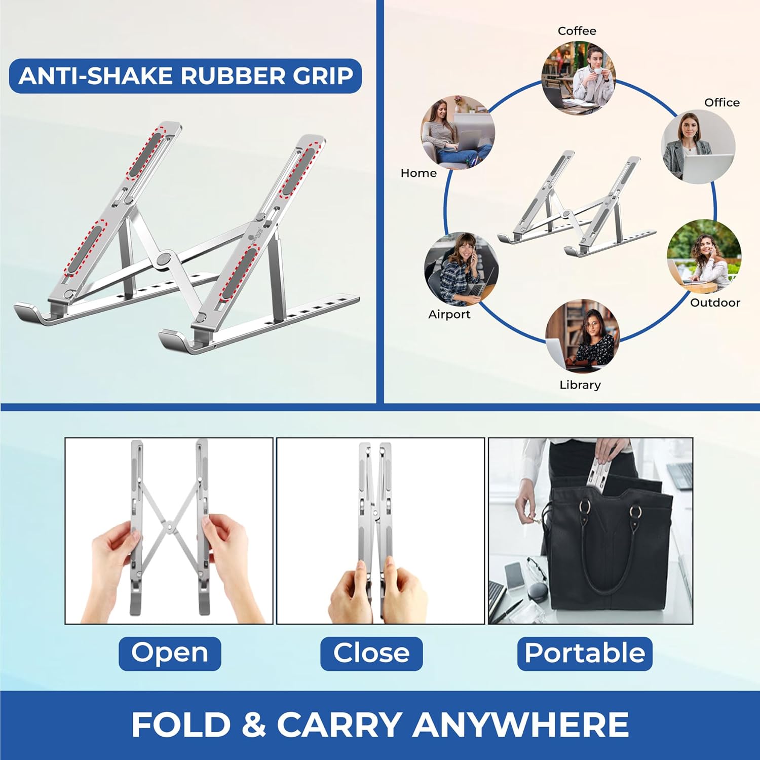 DG PRIME COLLECTION Tabletop Laptop Stand Ergonomic Foldable Portable Laptop Stand Holder Compatible for MacBook, HP, Dell, Lenovo & All Other Notebook laptop stand for desk / office / Table / Bed / Travel- Lightweight Aluminium Alloy Tabletop