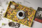 - Package Contents: 1 Tray. Does not come with the mug as shown in the image. b) As this product is handcrafted there might be a slight colour, design or size variation, which is natural and hence makes the product unique.