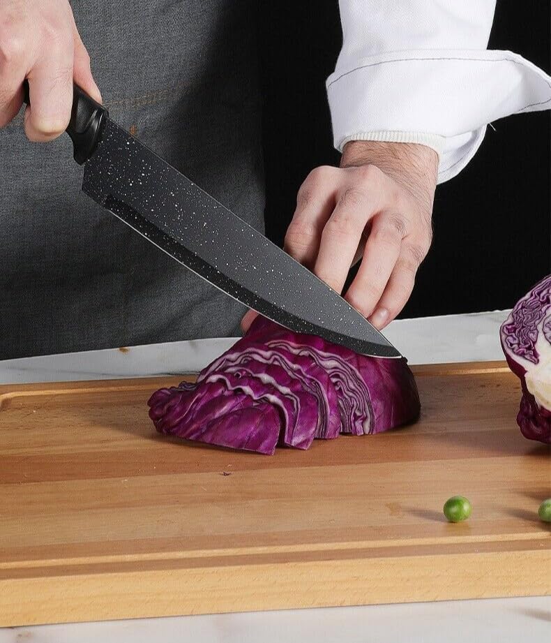 - MULTI-PURPOSE KNIFE SET - 6-piece set necessary for the kitchen (including: 8-inch chef's knife, 8-inch bread knife, meat cleaver, 5-inch multi-purpose knife, 3.5-inch fruit knife, sc), easy to handle all kinds of ingredients.