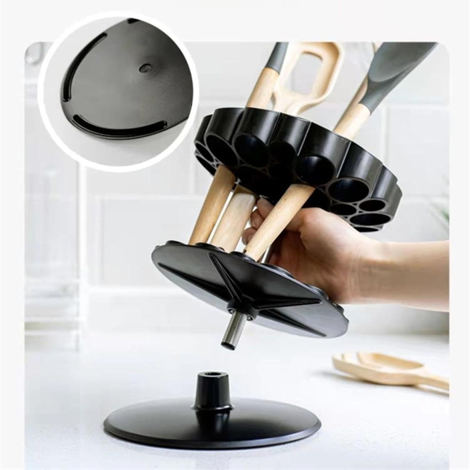 ECOVISTA rotating honeycomb utensil caddy rotating kitchen multi function rotating chopsticks bucket knife holder kitchen accessories aesthetic look (black)-1pc