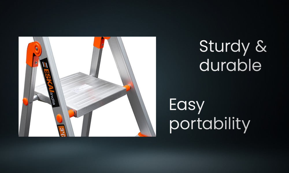 ESKAI INDIA 6 Step (5+1) Orange Hybrid Heavy Duty Foldable Durable Ladder with Platform